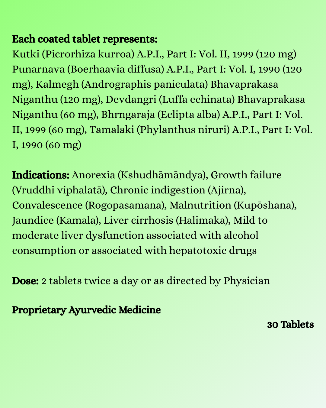 Adults: 1 tablet twice daily - For Intensive Liver Support